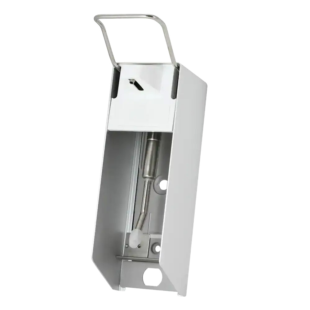 Reibungsloser Ablauf, Hygiene und vorausschauendes Handeln sind auf Krankhausstationen, in Praxen oder Pflegeeinrichtungen von entscheidender Bedeutung, damit sich das Personal gut vorbereiten kann und Patienten oder betreute Personen sich wohl fühlen. Daher sind nützliche Spender für gebräuchliche Verbrauchsmaterialien unentbehrlich, weil sie zügige Prozesse am Laufen halten und hygienisch sind. Dieser Spender ermöglicht eine hygienische und genau dosierte Entnahme von flüssigen Seifen und Desinfektionsmitteln. Denn die hygienische Handreinigung mit anknüpfender Desinfektion kann verhindern, dass Infektionserreger oder andere Keime mit den Händen übertragen werden. Nutzen Sie deshalb den Spender für flüssige Seifen und Desinfektionsmittel.Das aus Aluminium hergestellte Produkt ist für den Langzeitgebrauch ausgelegt und so hygienisch desinfizierbar, ohne dass es zu Materialkorrosion kommt. Ein schneller Druck auf den kurzen Hebel und der Inhalt ist in der richtigen Dosierung bereitgestellt.